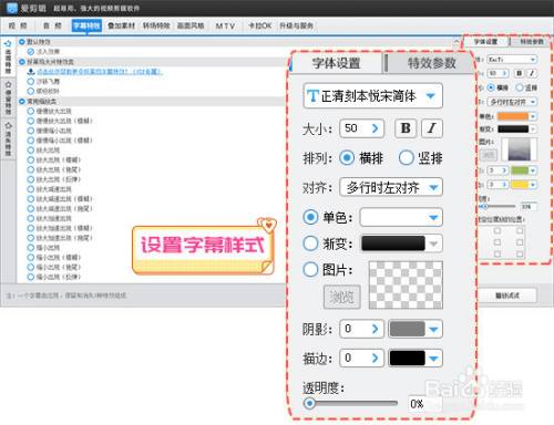 在“字幕殊效”面板下,双击视频预览框,在弹出框中输入文字。选中添加的字幕,按照视频气势派头,选择喜欢的字体,自由搭配字幕样式效果以及动态效果,让字幕布满个性。