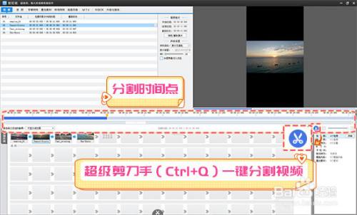 定位到支解时间点后,利用“超等铰剪手”(快捷键Ctrl+Q)一键支解视频。