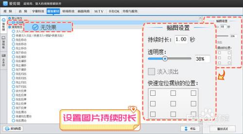 在“叠加素材”-“加贴图”面板下,双击视频预览框,在弹出的选择贴图框中,选择已有图片,或者经由过程“添加贴图至列表”,导入本身的图片(中心镂空的png格局图片)。添加图片后,调解图片的巨细、位置、时长等,遮住黑边即可。