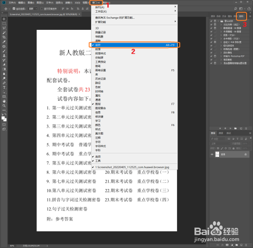 经由过程窗口菜单,打开动作面板