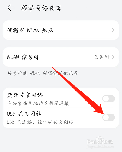 在界面中,将USB共享收集点击开启即可。