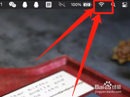 打开电脑,在桌面点击上方的WiFi图标。