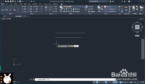输入l,回车或者空格。输入第一个点的坐标,输入x轴参数,输入逗号,输入y轴参数。