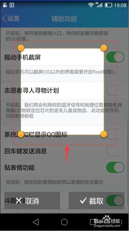 选中后,摇一摇手机,就会在屏幕上呈现一个“划取肆意区域截图”的提醒;