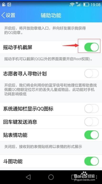 将手机屏幕往下滑,找到“摇动手机截屏”功效,今朝是未选中状况;