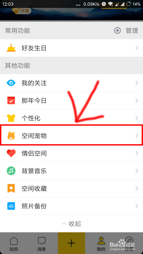 接着在功效里找到【空间宠物】点击进去宠物界面。