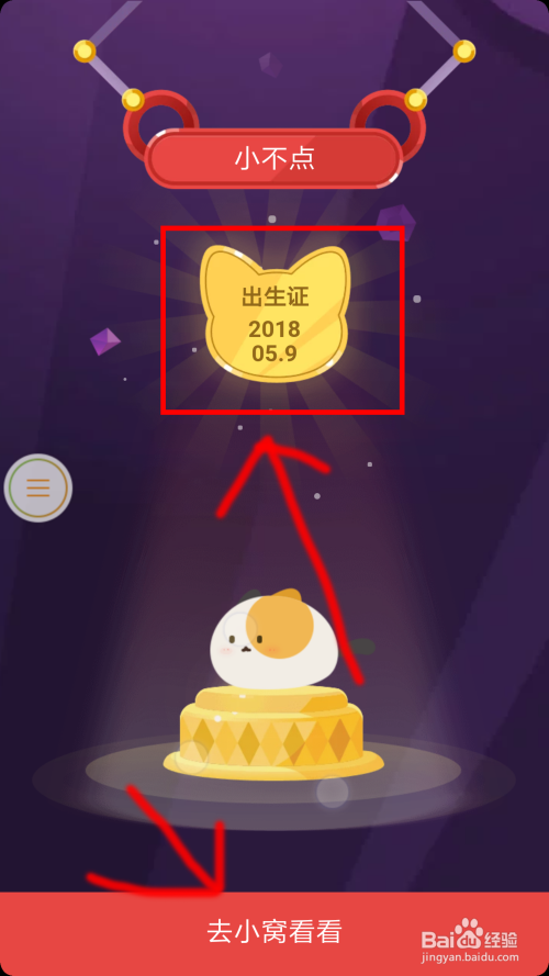领养乐成会弹出宠物的生日,鄙人边点击【去小窝看看】就能进入宠物的空间。