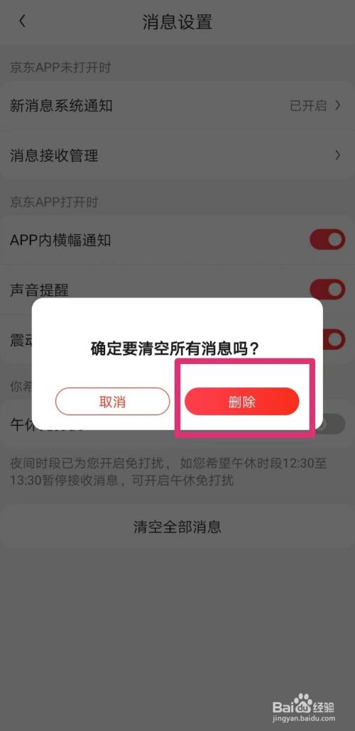 第五步、在弹出来的对话框中,选中“删除”,即将该APP的动静全数清空。