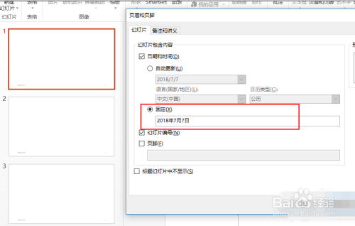 回到幻灯片中您就会看到幻灯片页面上的底部已经有了日期以及页码