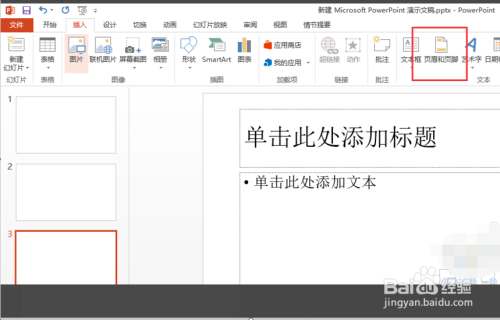 然后点击顶部的插入菜单,接下来点击页眉和页脚选项