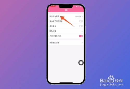 打开设置页面之后,点击页面上方位置的【默认进入频道】。
