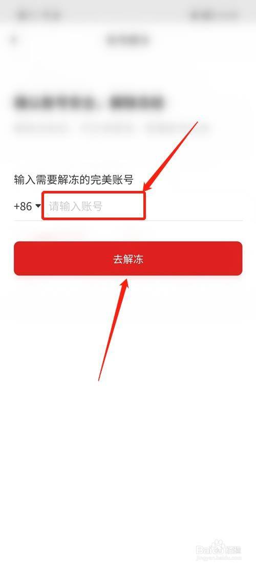 然后输入【账号】,点击【去解冻】按钮,如下图所示。