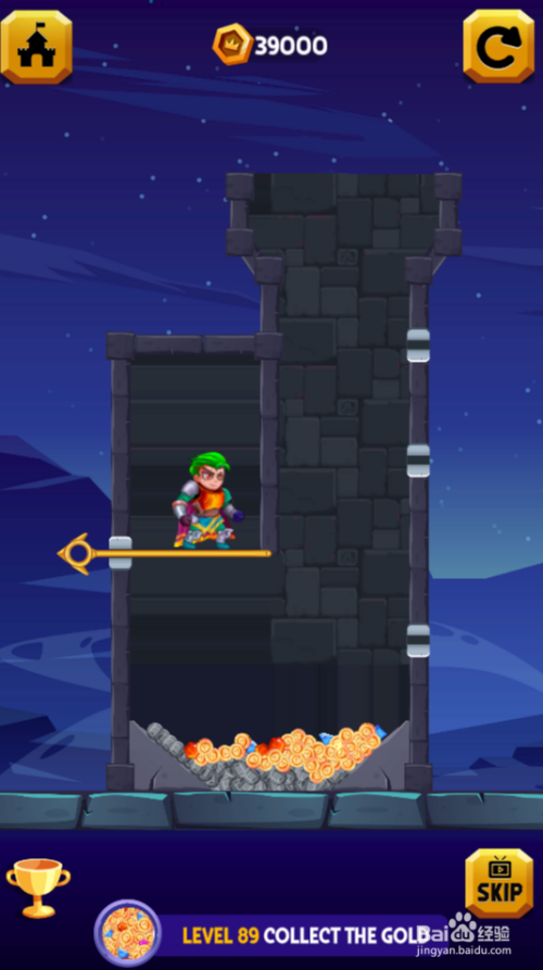 这一关是得到宝藏,共有四个横标的目的拉针,红色熔岩在宝藏的下侧,环境如图。