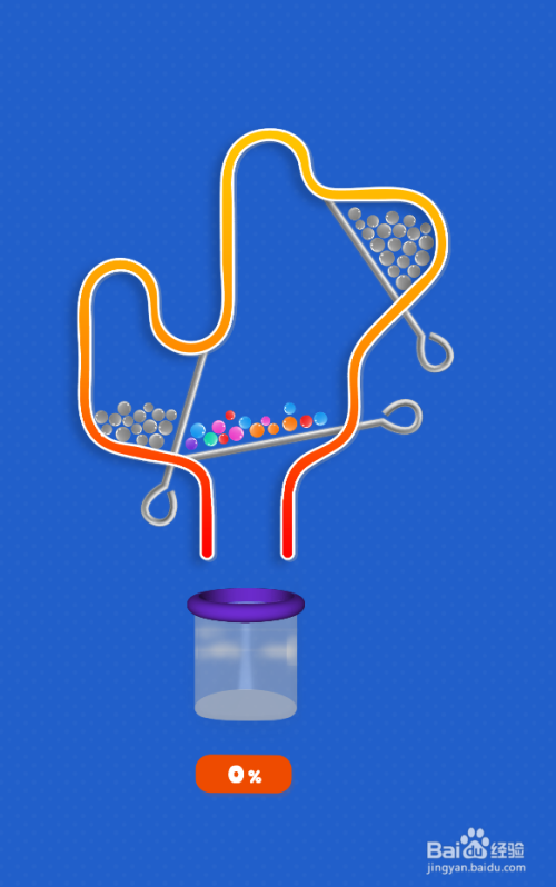 彩色小球全数进入底部的瓶子里,弹出通关动画,如图,这样就过关了。