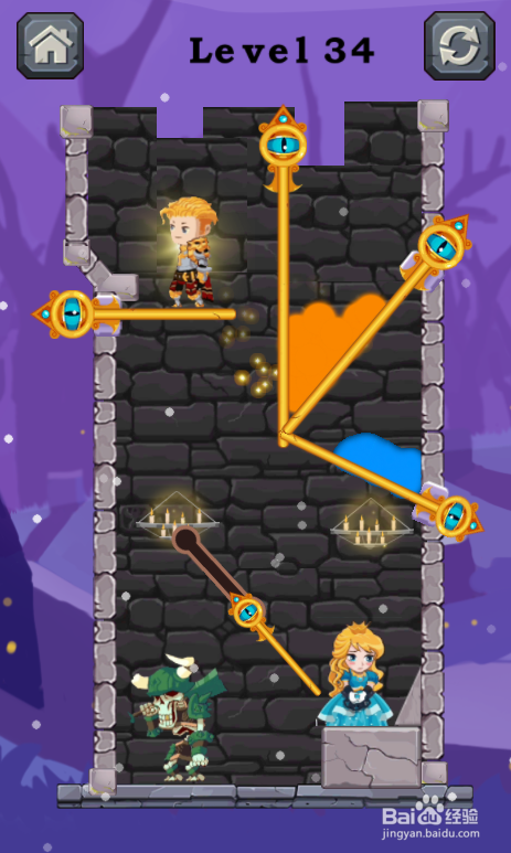 点击拔失少年下面的横标的目的拉针,如图。公本家儿获救,这样就过关了。