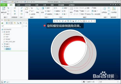 接下来进修倒圆角,在“模子”(Model) 选项卡的“工程”(Engineering) 组中,单击 “倒圆角”(Round)。