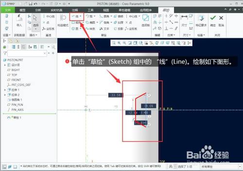 d. 单击“草绘”(Sketch)。“草绘”(Sketch) 选项卡随即打开。