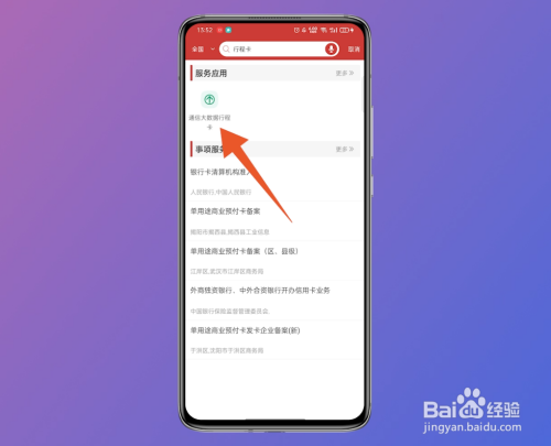 乐成搜刮后,点击通讯大数据行程卡的按钮,进入到新的界面。