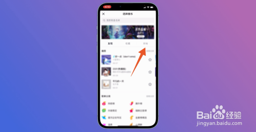 在视频的拍摄界面中,经由过程点击上方的选择音乐,来到新页面。