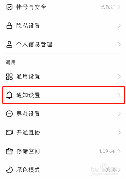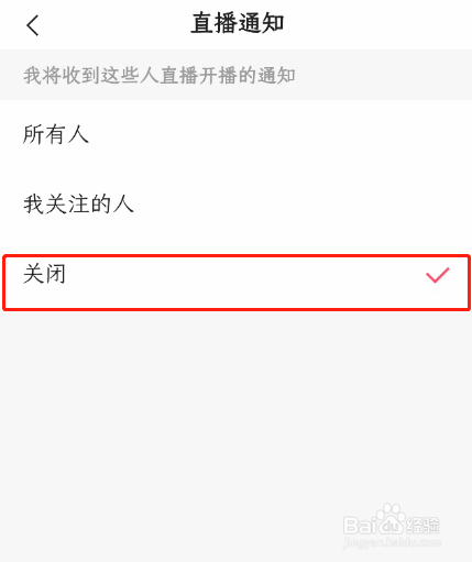 打开如下图界面,滑动手机屏幕,选择直播通知选项,点击打开