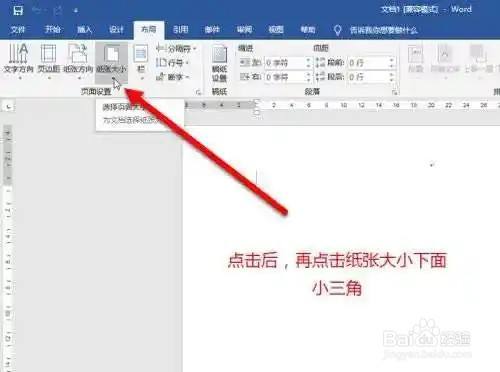 打开后,再点击纸张巨细下面小三角打开二级菜单。