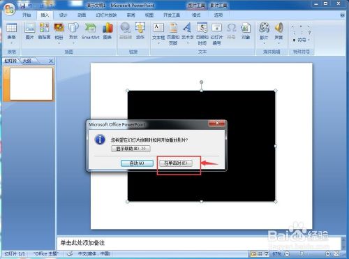 当我们单击影戏时,就主动开始播放添插手powerpoint的影片。