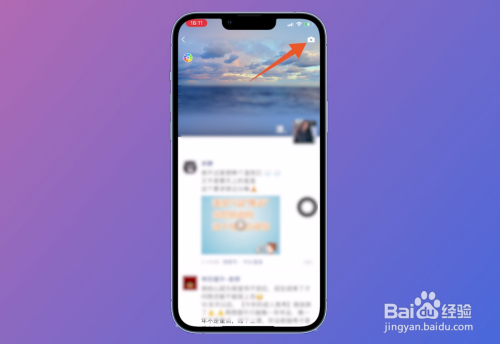 进入朋友圈动态页面后,点击页面上方位置的【相机】图标。