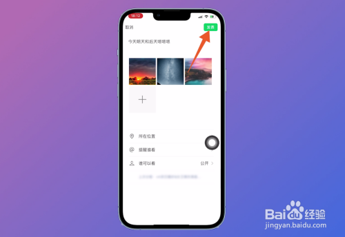 将该条朋友圈整理好之后,点击页面右上角的【发表】,即可从头公布该条朋友圈。