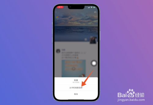 在弹出来的窗口内里,找到并点击【从手机相册选择】这一栏。