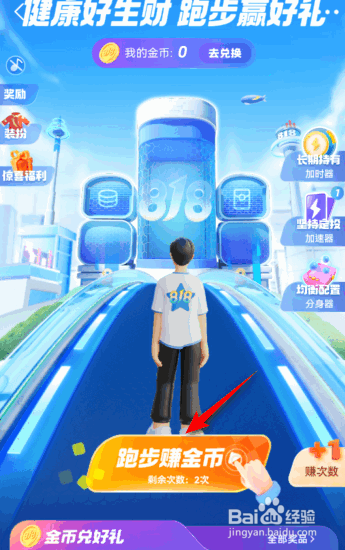 然后点击跑步赚金币,默认次数为2次。