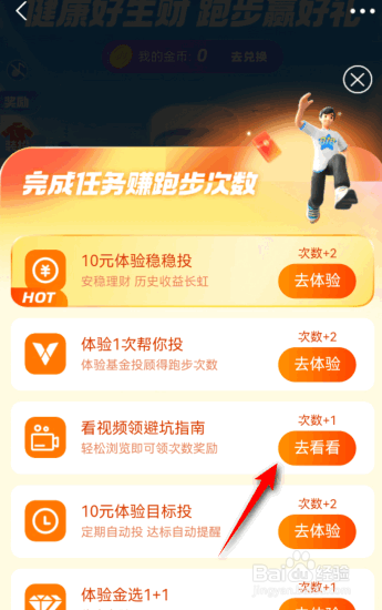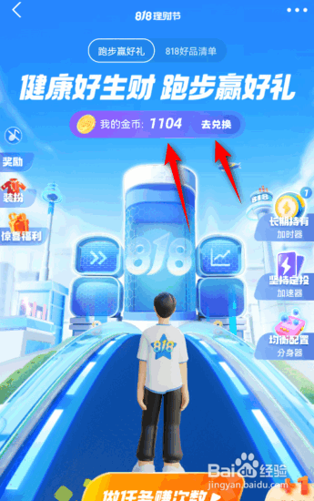 之后完当作跑步,这样便可以得到金币,点击去兑换。