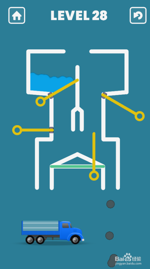 这一关共有三个拉针与一个竖标的目的滑杆,横标的目的拉针上面是玄色水溶液,斜标的目的拉针上面有两种颜色的水溶液,环境如图。
