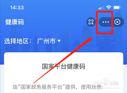 在康健码页面,点击右上角三小点图标。