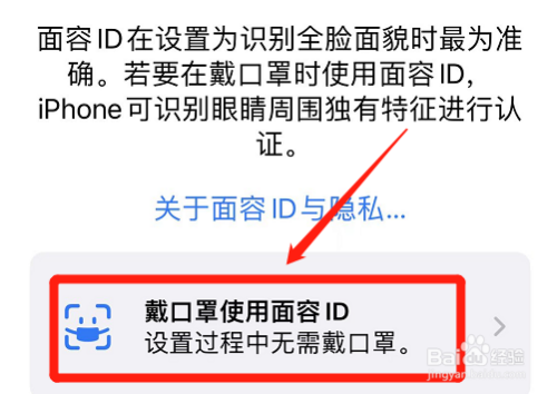录入面目面貌后,弹出戴口罩面目面貌先容页,点击“戴口罩利用面目面貌ID”项。
