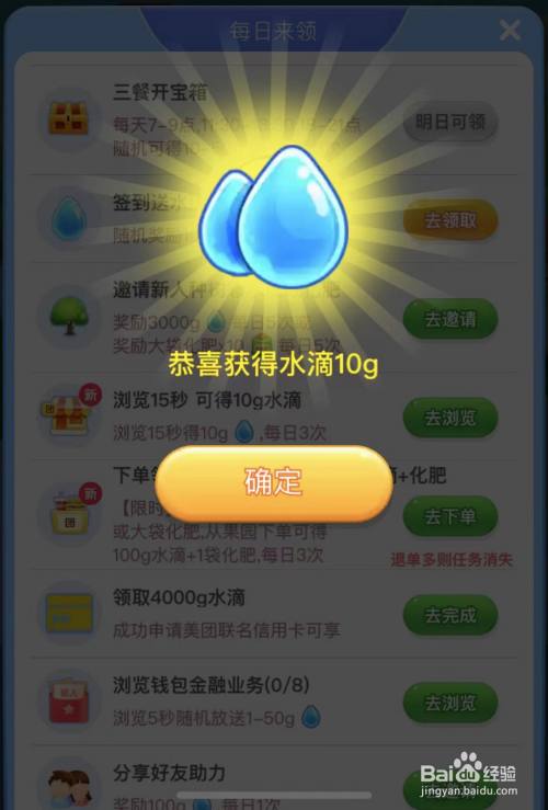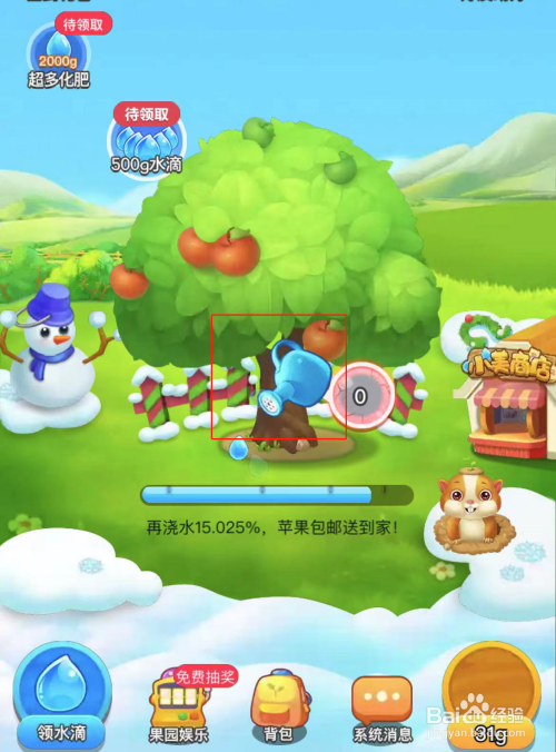 点击完当作之后,即可发明水壶在给树浇水,天天浇水到必然数目,果树成果完当作,即可免用度领取一箱生果。