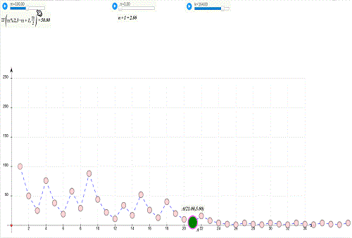例如:当迭代的初始值m=100,那么第25次迭代的值是2,后面的迭代历程进入了轮回状况。