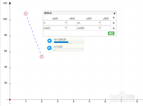 绘制坐标点(n,m)和(m001,m000),并在这两个点之间毗连一条虚线线段。