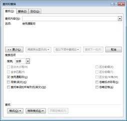 打开【查找和替代】对话框,在【更多】选项下单击选中吗【利用通配符】复选框。