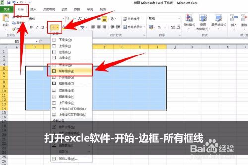 新离施建表格.打开excle软件-开始-边框-所有框线,此时框线呈玄色