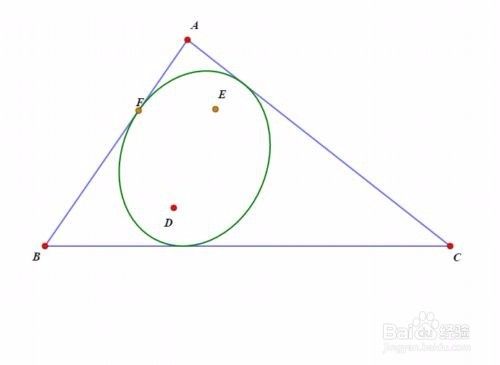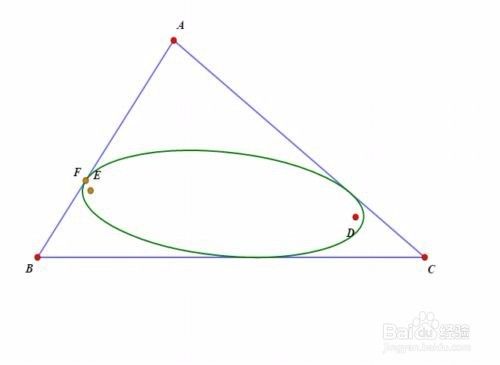 设D点关于三角形ABC的等角共轭点是E点,那么E点就是这个椭圆的另一个核心。