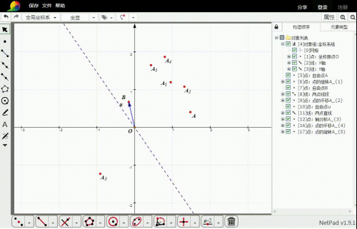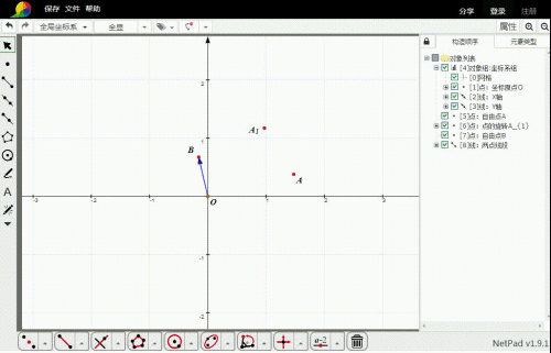 选择A,再选择标的目的量OB(有标的目的线段),点击平移东西,就可以实现平移。