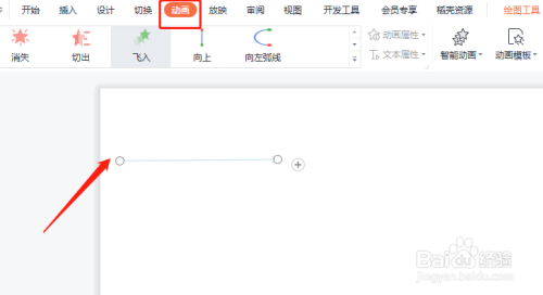 拖动鼠标,绘制一个箭头,点击箭头,单击动画选项。
