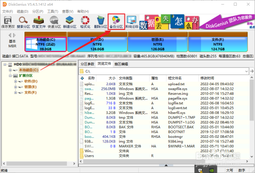 点击东西栏中的“备份分区”。
