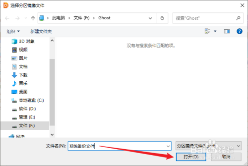 在“选择分区镜像文件”对话框中,输入文件定名,然后点击“打开”按钮。