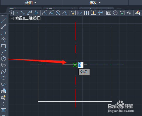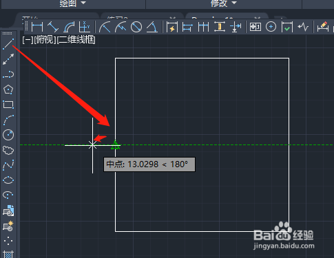 2. 选直线东西,捕获中点,鼠标标的目的左移动一些位置后点击,绘制出直线。