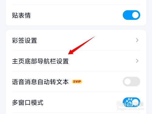 在辅助功效中,点击本家儿页底部导航栏设置这个选项。