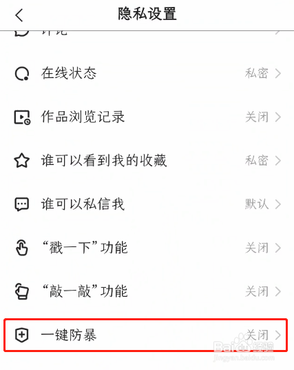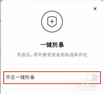 弹出如下图界面,选择开启一键防暴选项,点击打开后面的开关