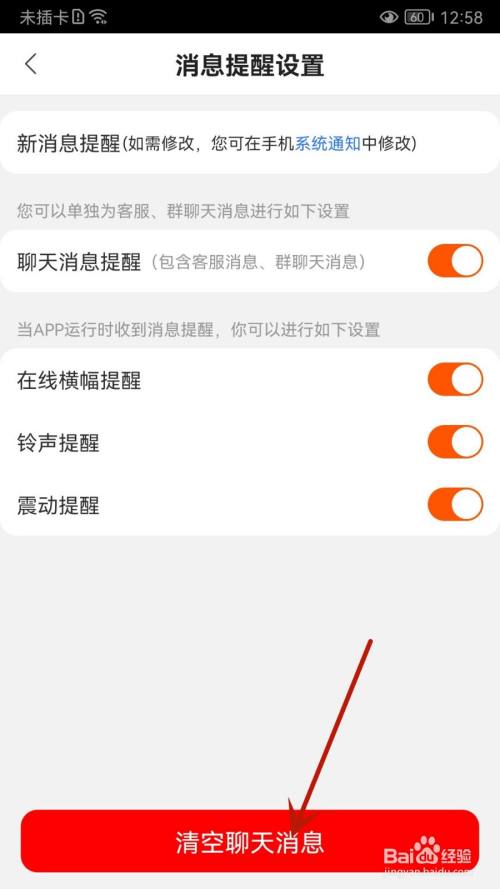 切换动静提示设置的页面选择“清空谈天动静”选项