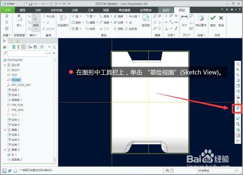 在图形中东西栏上,单击 “草绘视图”(Sketch View)。