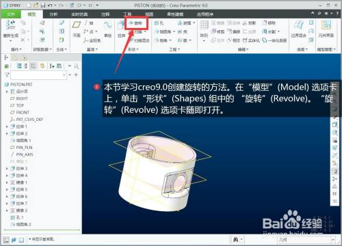 本节进修creo9.0创建扭转创建活塞环的要领。在“模子”(Model) 选项卡上,单击“外形”(Shapes) 组中的 “扭转”(Revolve)。“扭转”(Revolve) 选项卡随即打开。